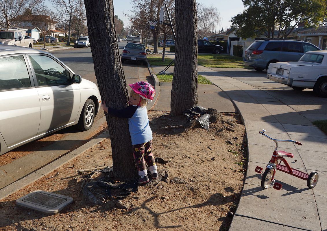 Обнимает деревья