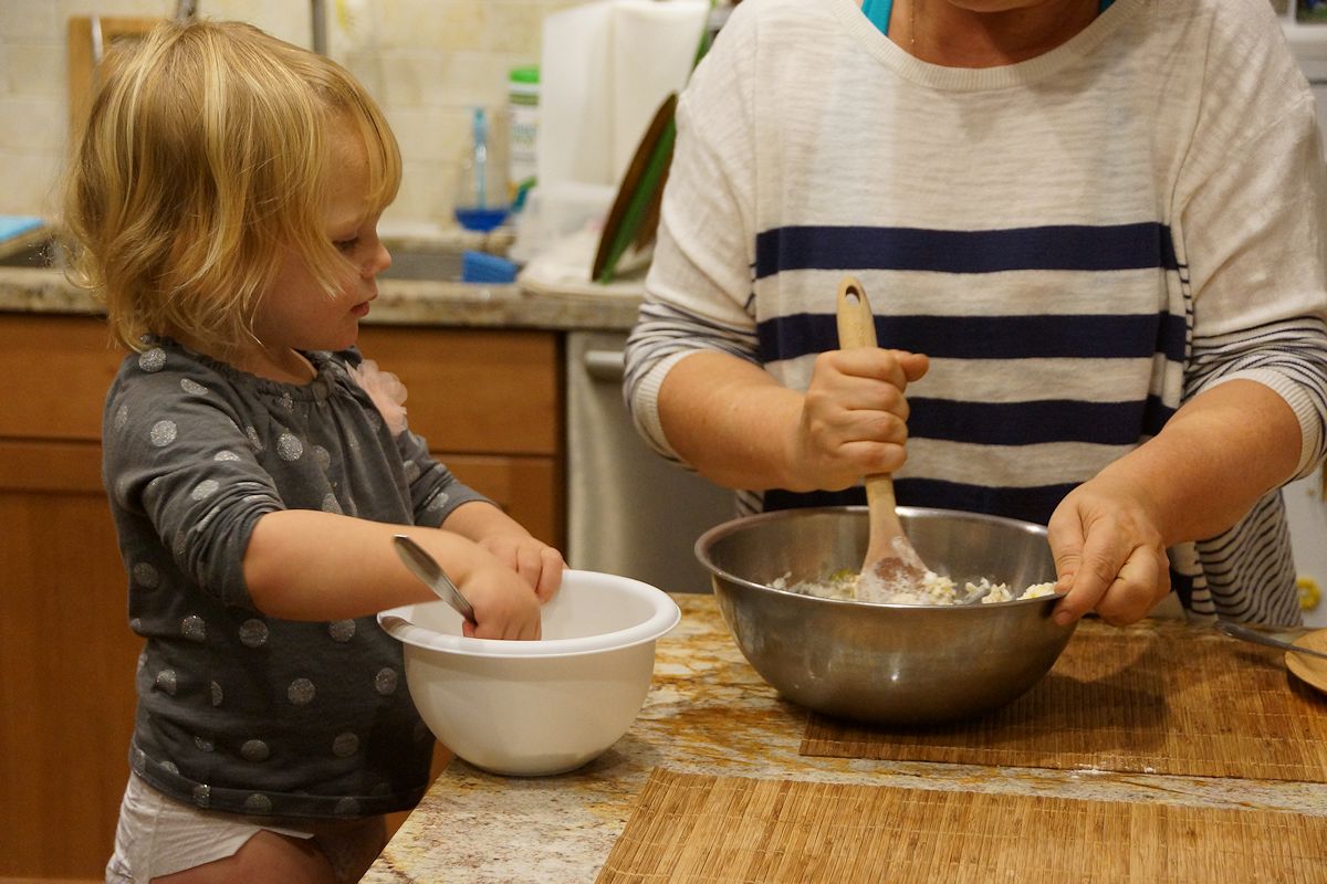 помогает делать печенье