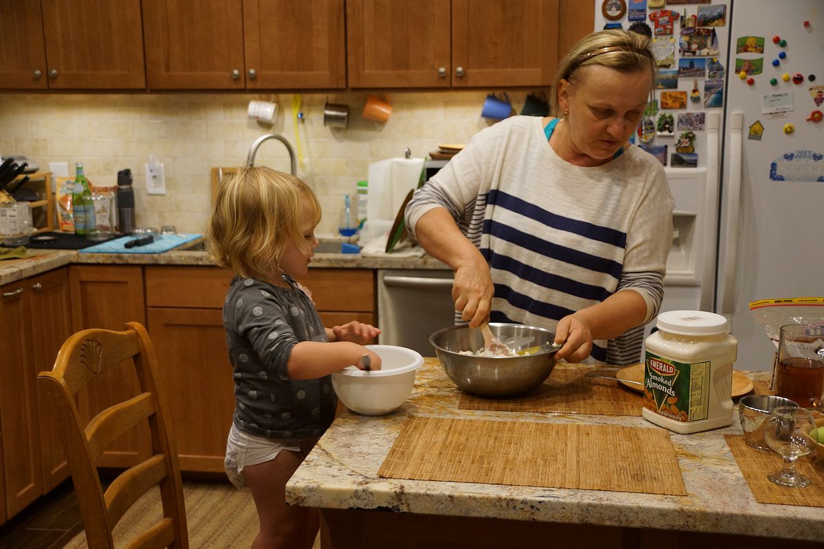 помогает делать печенье