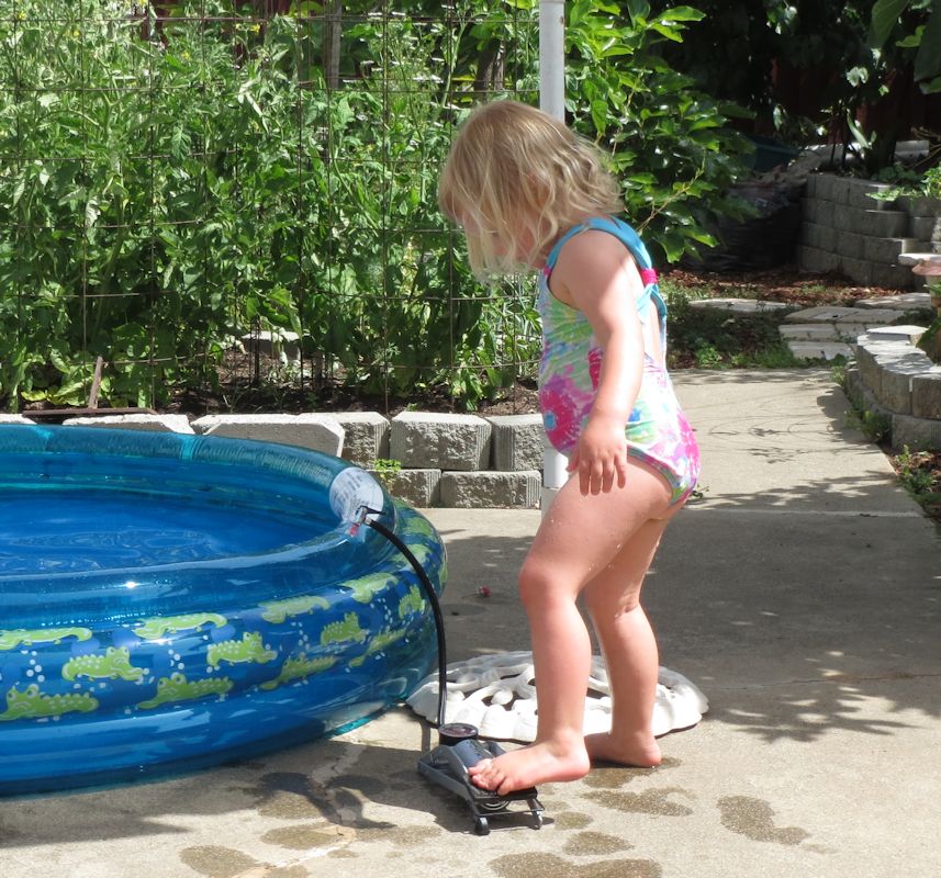 Марго надувает бассейн