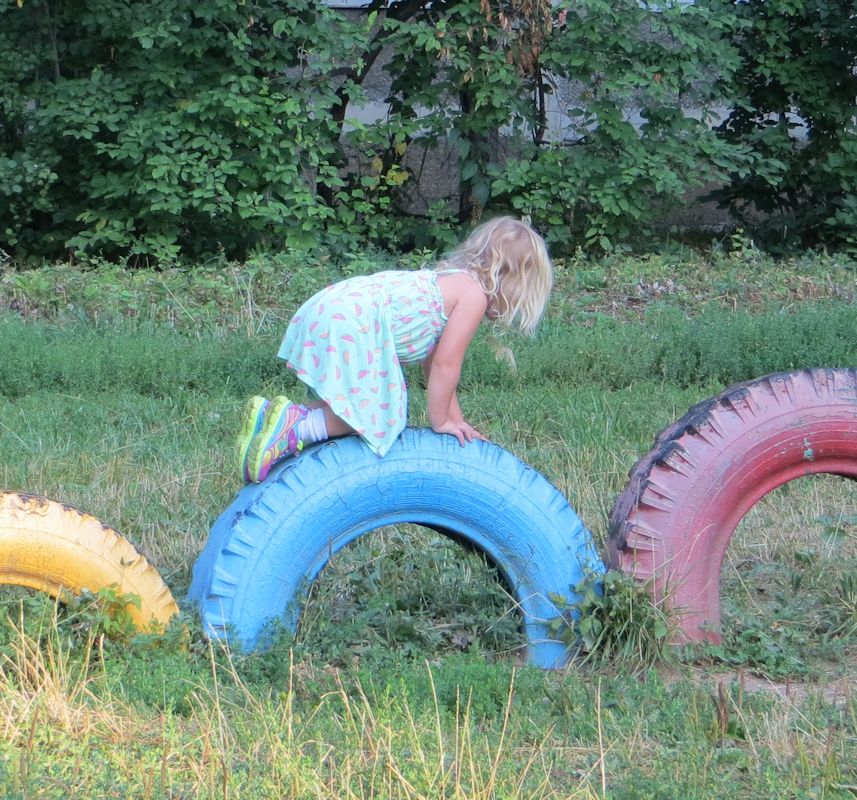 Марго на детской площадке. Колёса
