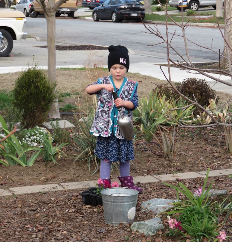 Сажает цветы