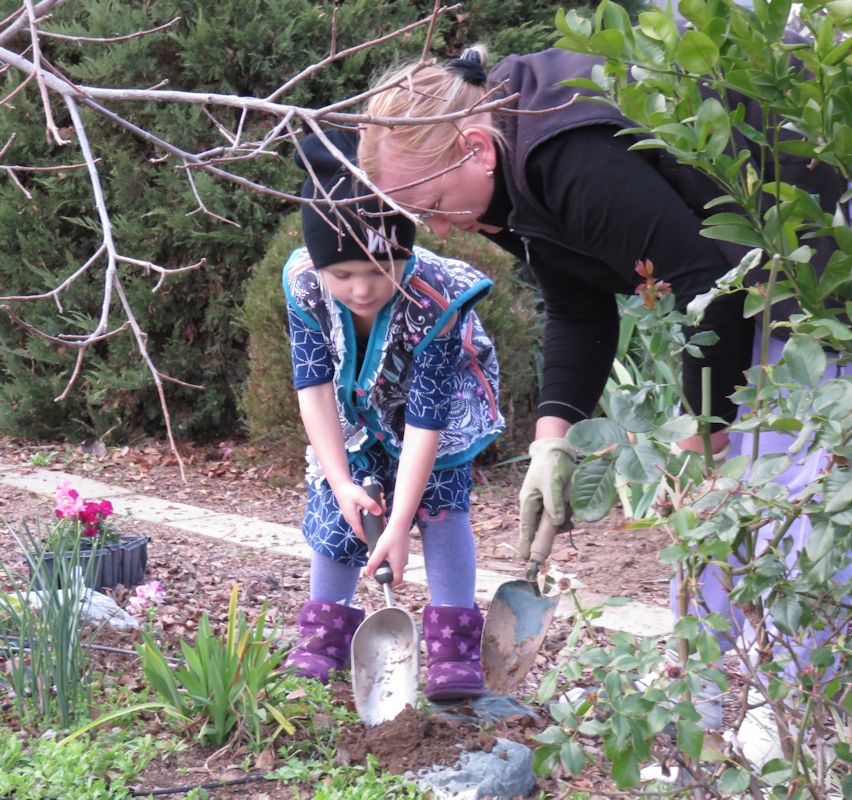 Сажает цветы