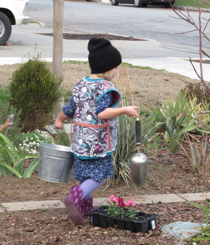 Сажает цветы